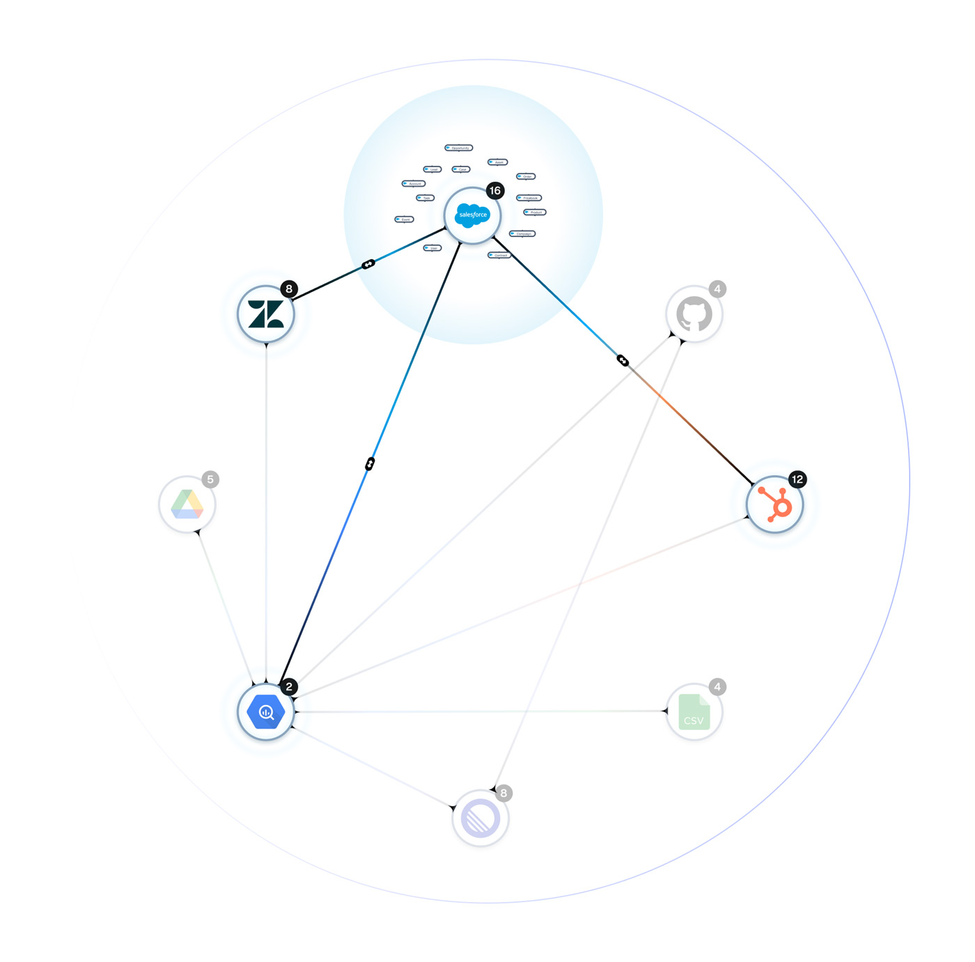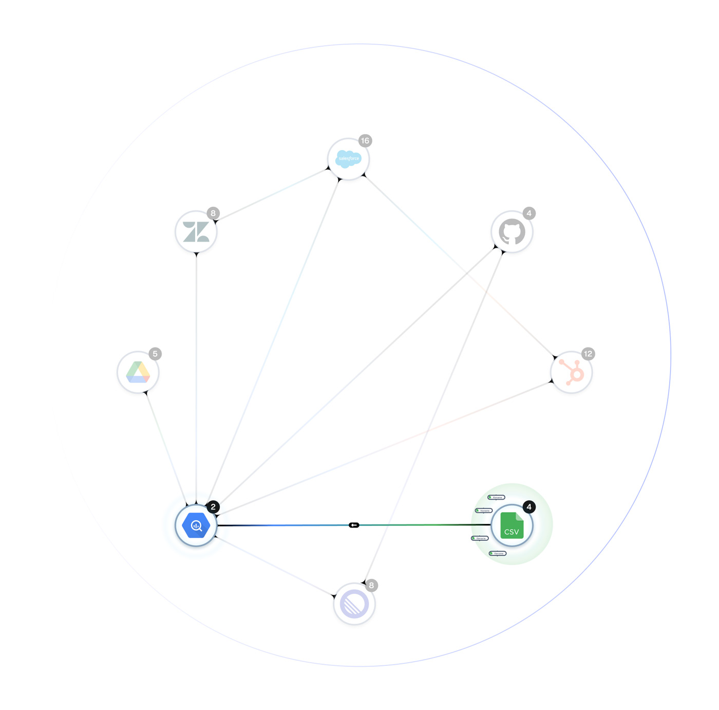 Generate a live map of how your data connects across systems, making relationships visible and navigable at a glance.